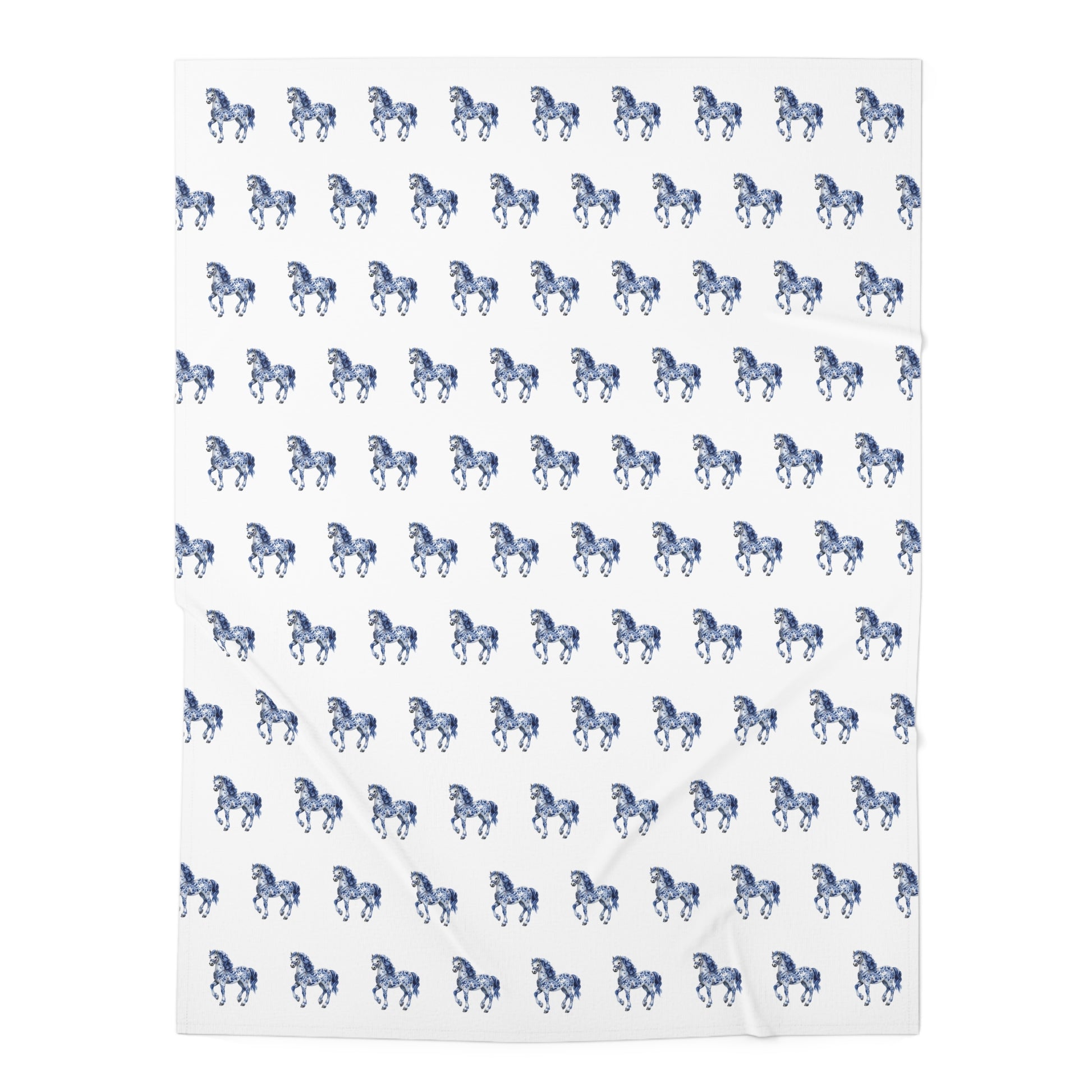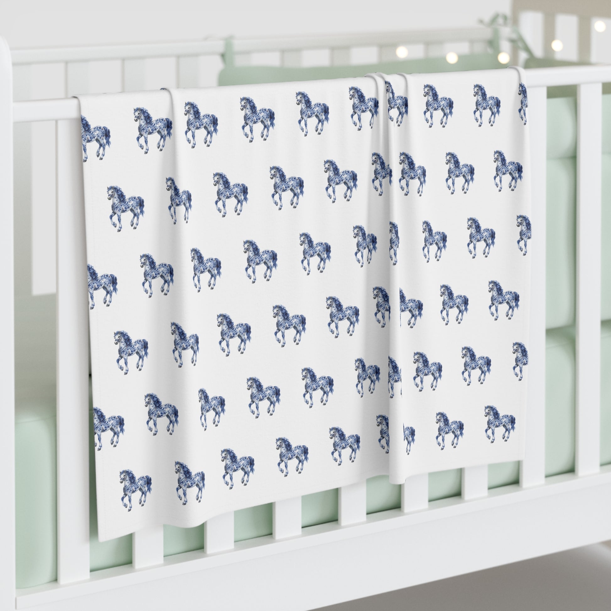 Blue "Porcelain Pony" Baby Swaddle Blanket - Soft Jersey for Newborns
