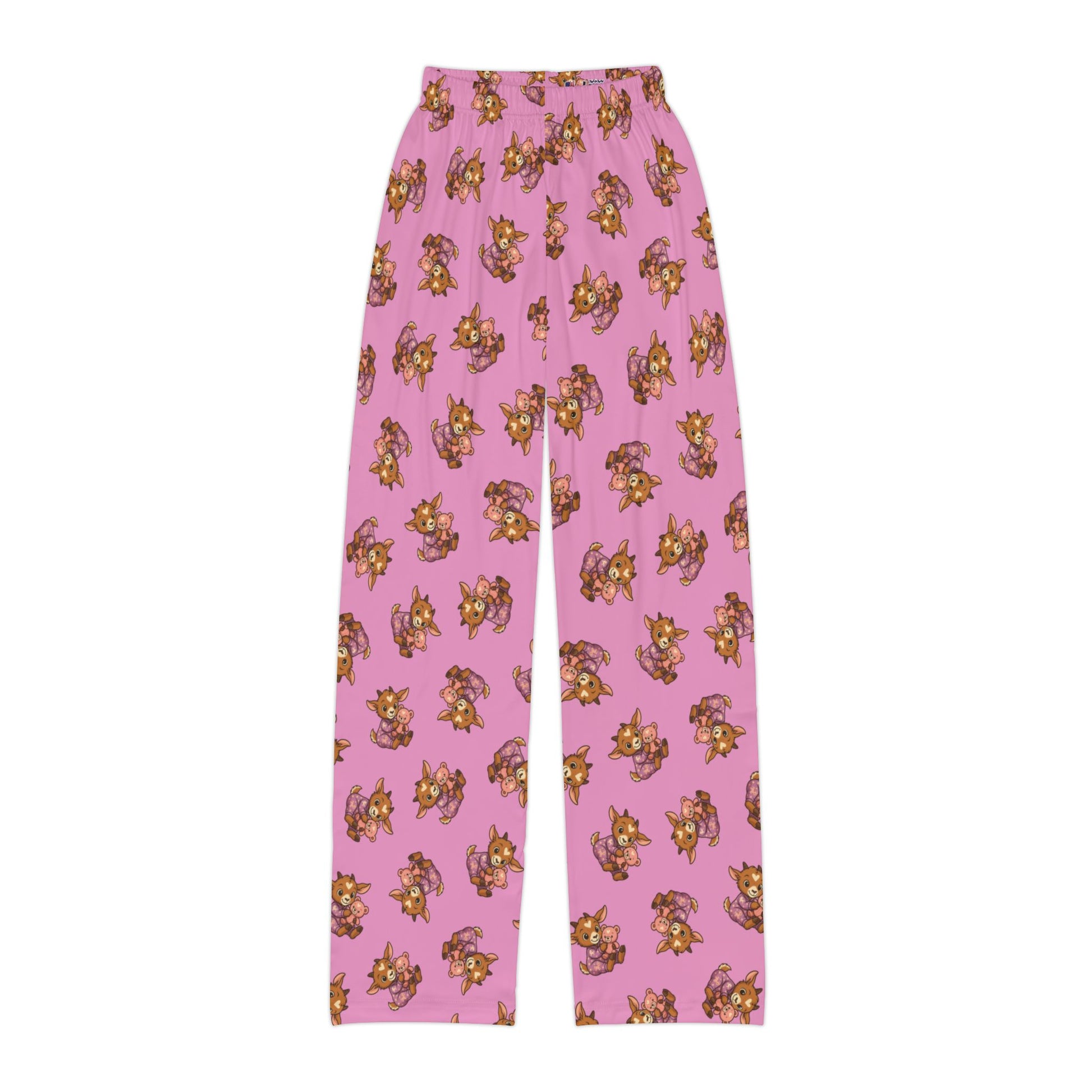 Snuggle up in style with our Bedtime Kid Lounge Pants, featuring Prancer the goat kid in cozy pajamas cuddling a teddy bear. This original HorsePlay Gifts artwork is part of our exclusive Prancer the Goat Kid series, designed for kids and animal lovers who enjoy a touch of whimsy in their wardrobe.