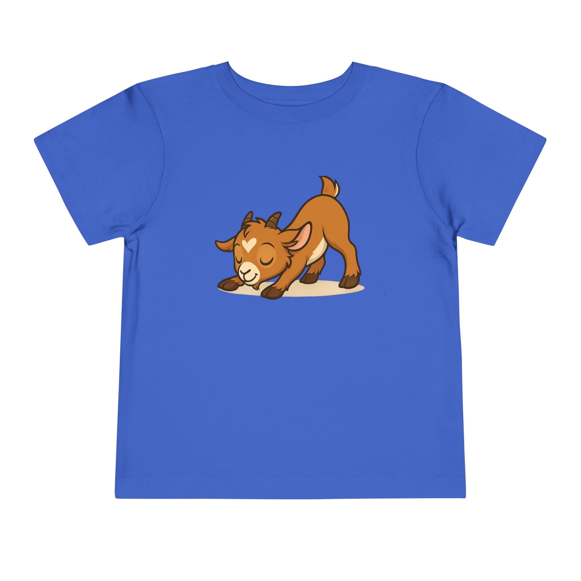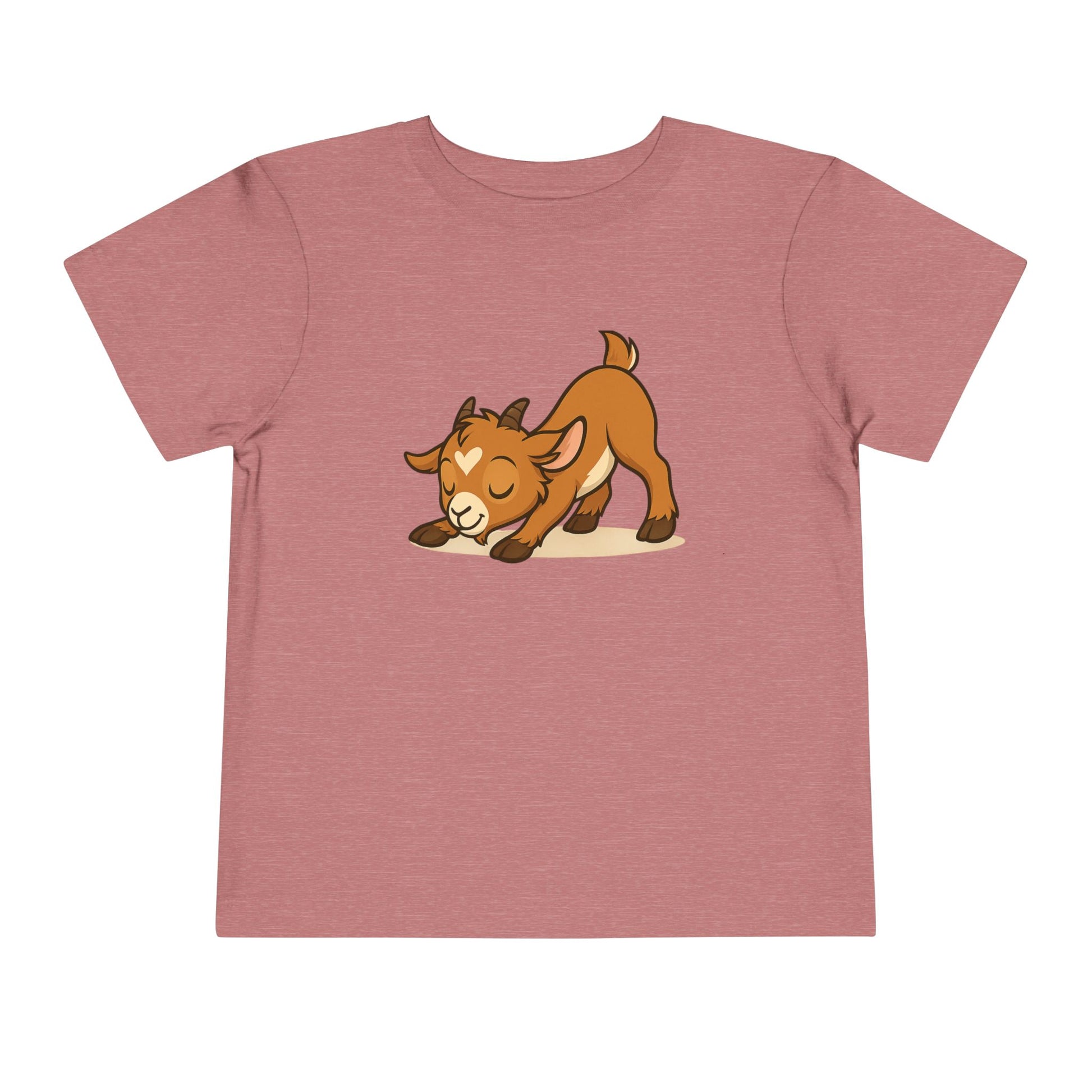 This delightful shirt features a beautifully illustrated cartoon Prancer (a kid!) in a playful stretching pose, reminiscent of a happy "play bow" or a "downward dog" yoga stretch. With its peaceful, happy expression and a cute little heart on its forehead, this design is guaranteed to bring smiles wherever your toddler roams.