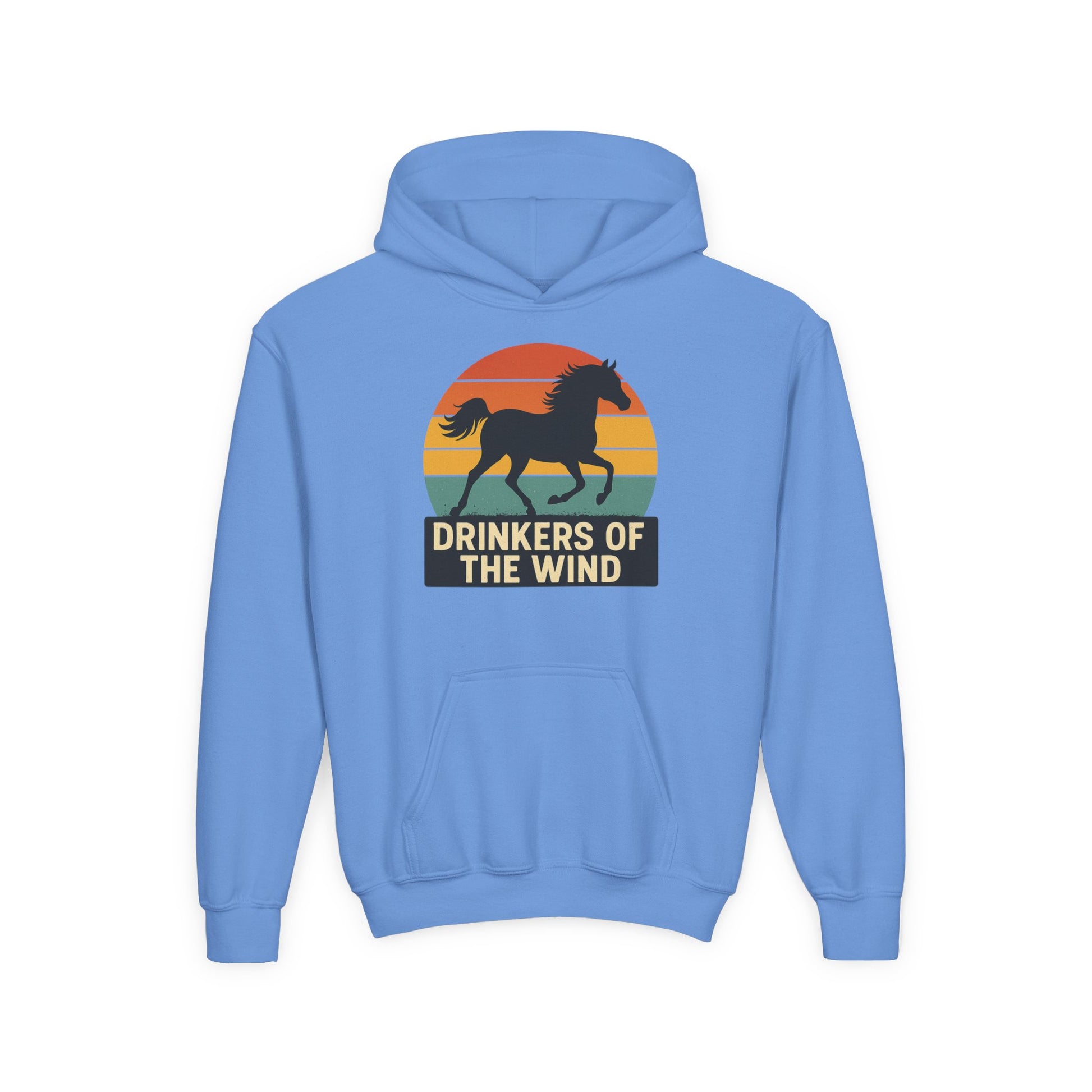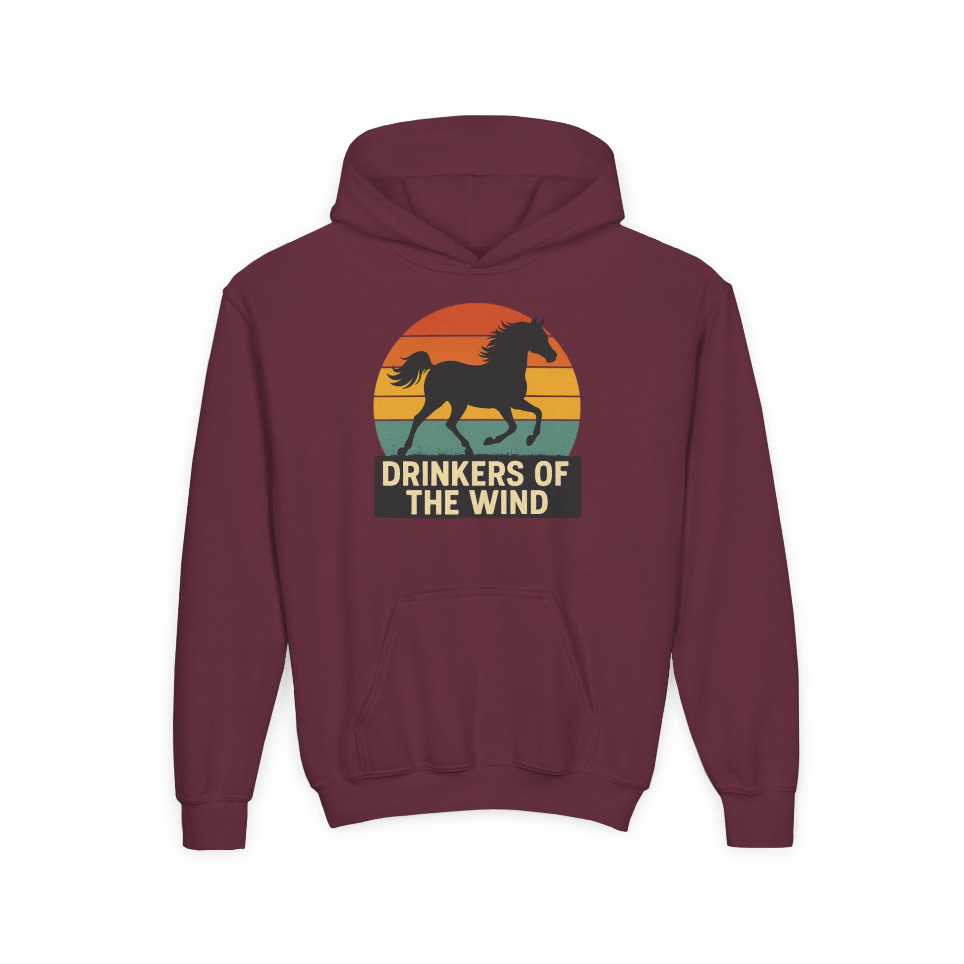 Youth Drinkers of the Wind Hoodie | Equestrian Kids Gift | Vintage Sunset Horse Hoodie | Cozy Horse Lover Apparel