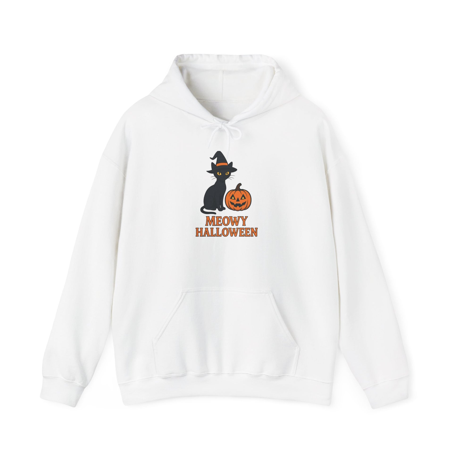 Meowy Halloween Cat Hoodie | Unisex Heavy Blend Hooded Sweatshirt | Halloween Apparel | Spooky Season Gift | Cozy Cat Lover Hooded Sweater