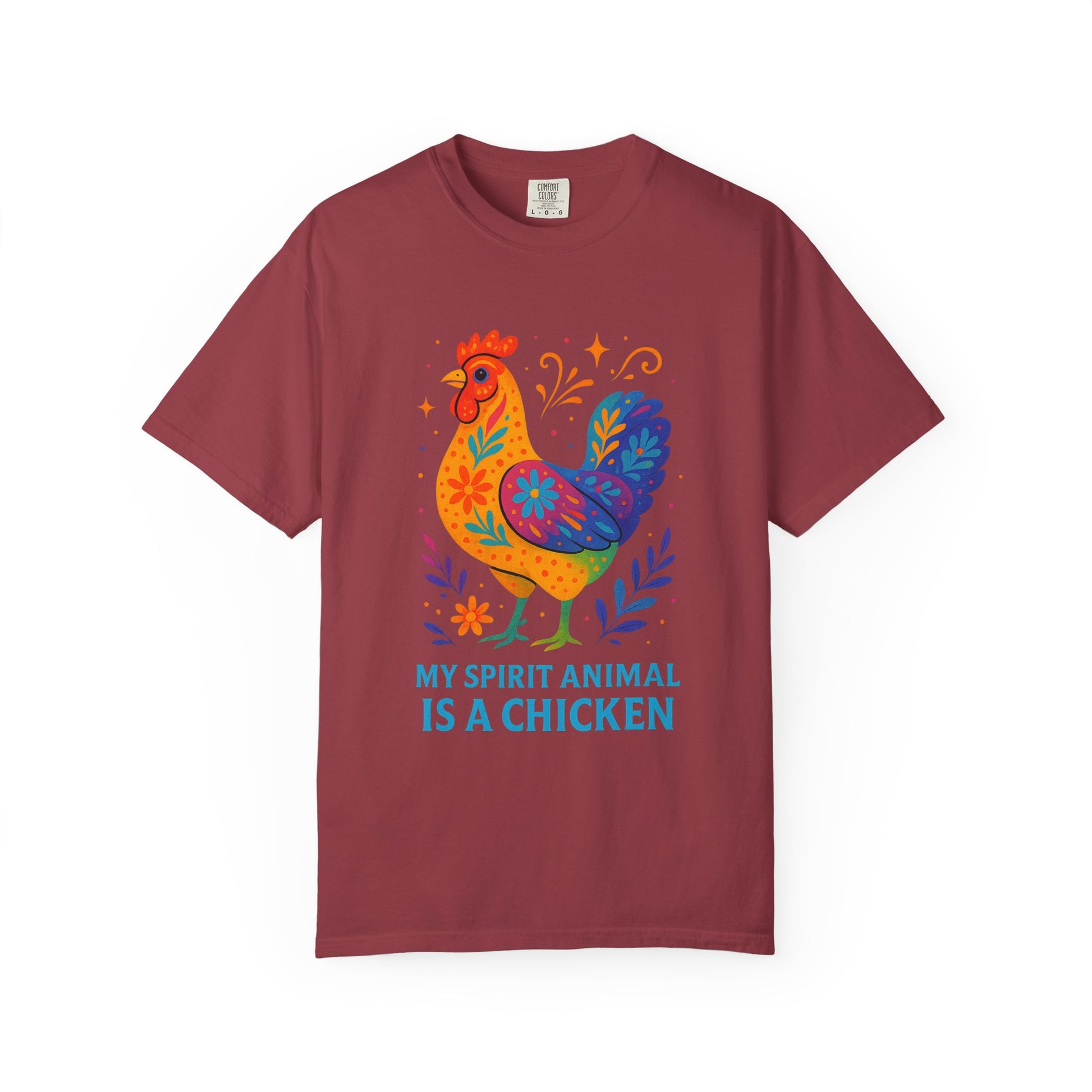 Show off your love for your feathered friends with this vibrant "My Spirit Animal is a Chicken" t-shirt! This unique and colorful tee features a beautifully stylized chicken with a bohemian floral pattern, perfect for anyone who feels a special connection to these quirky farm animals.