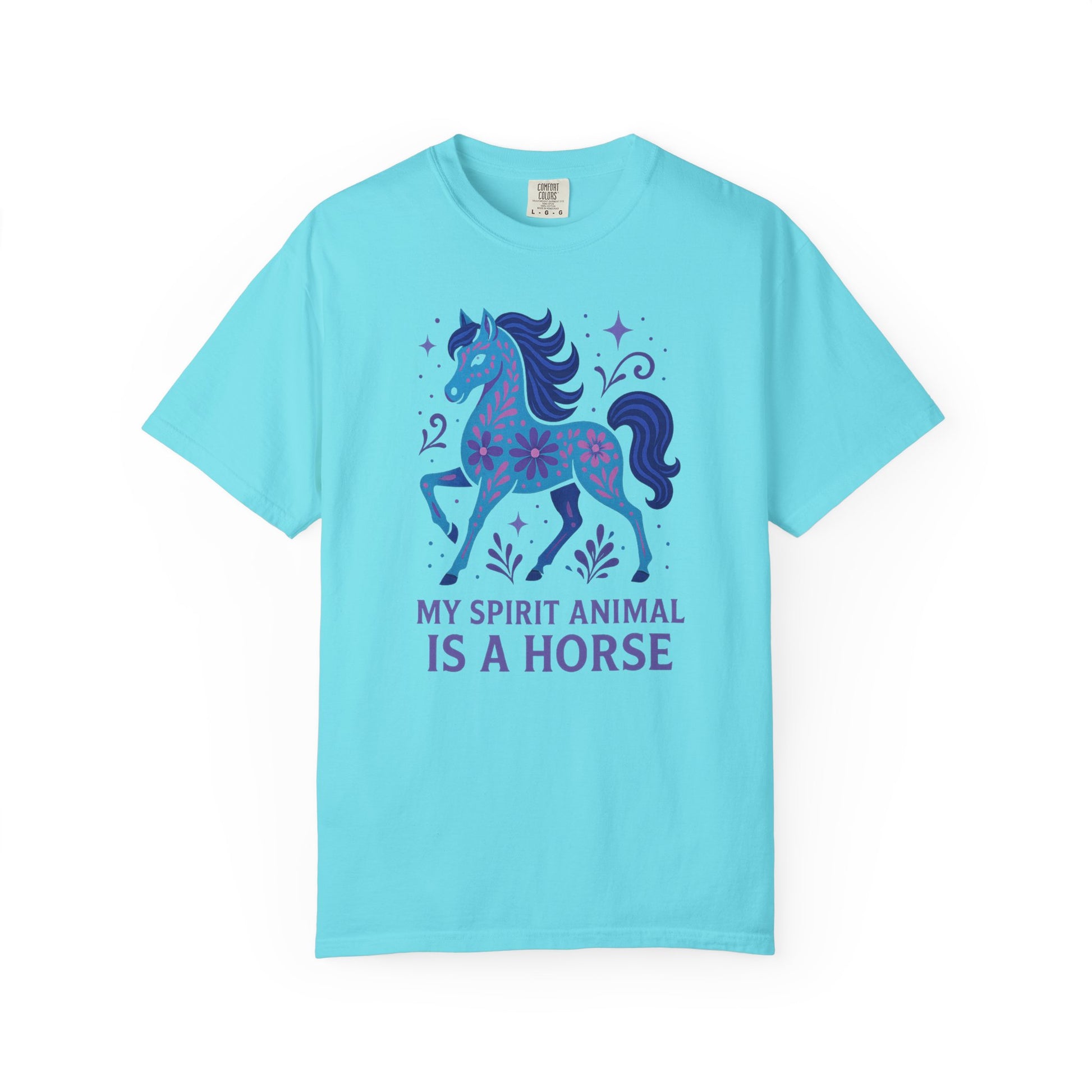 My Spirit Animal is a Horse Blue T-Shirt | Boho Horse Tee | Unique Equestrian Gift | Spiritual Horse Lover Shirt | Hippie Horse Apparel