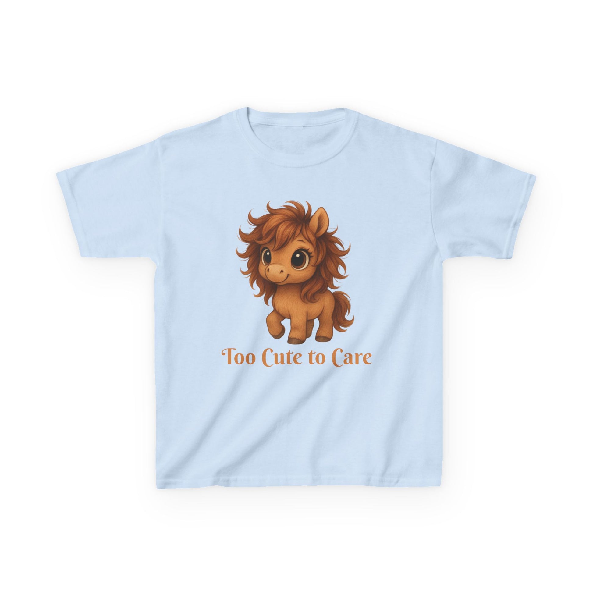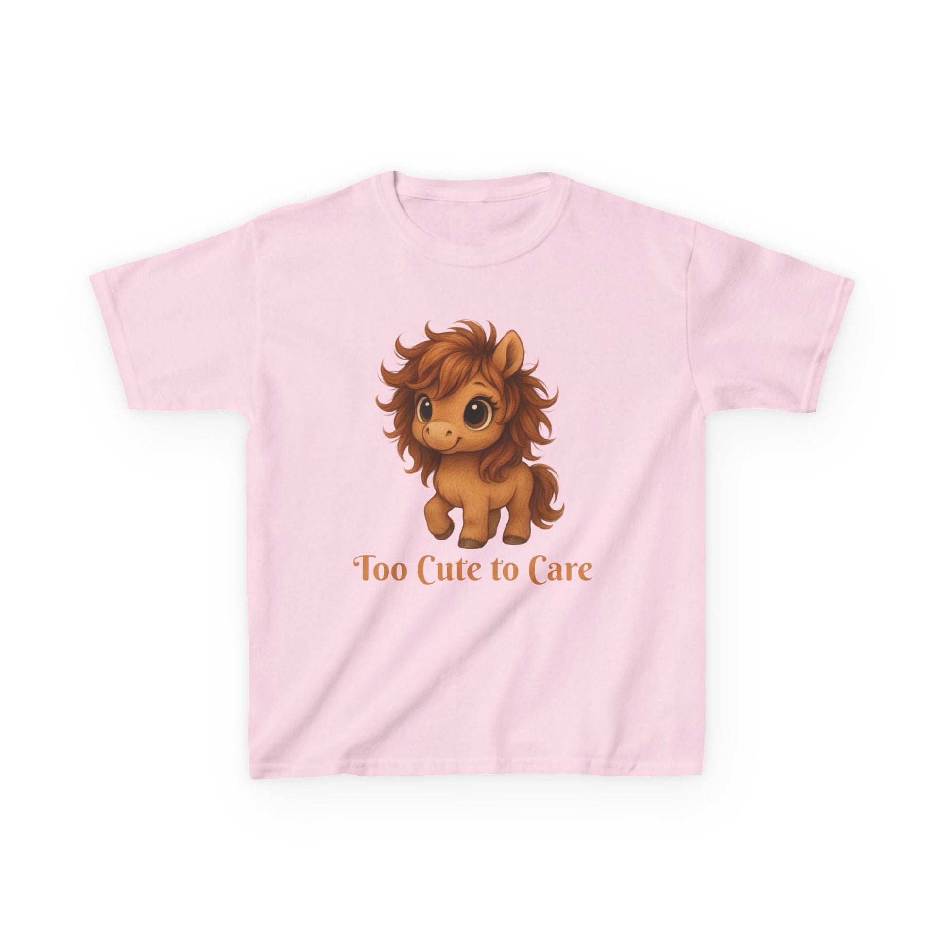 Youth Too Cute To Care – Whimsical Pony T-Shirt | Playful Horse Graphic Tee for Horse Lovers | Cute Kids Shirt | Gift for Pony Loving Kids