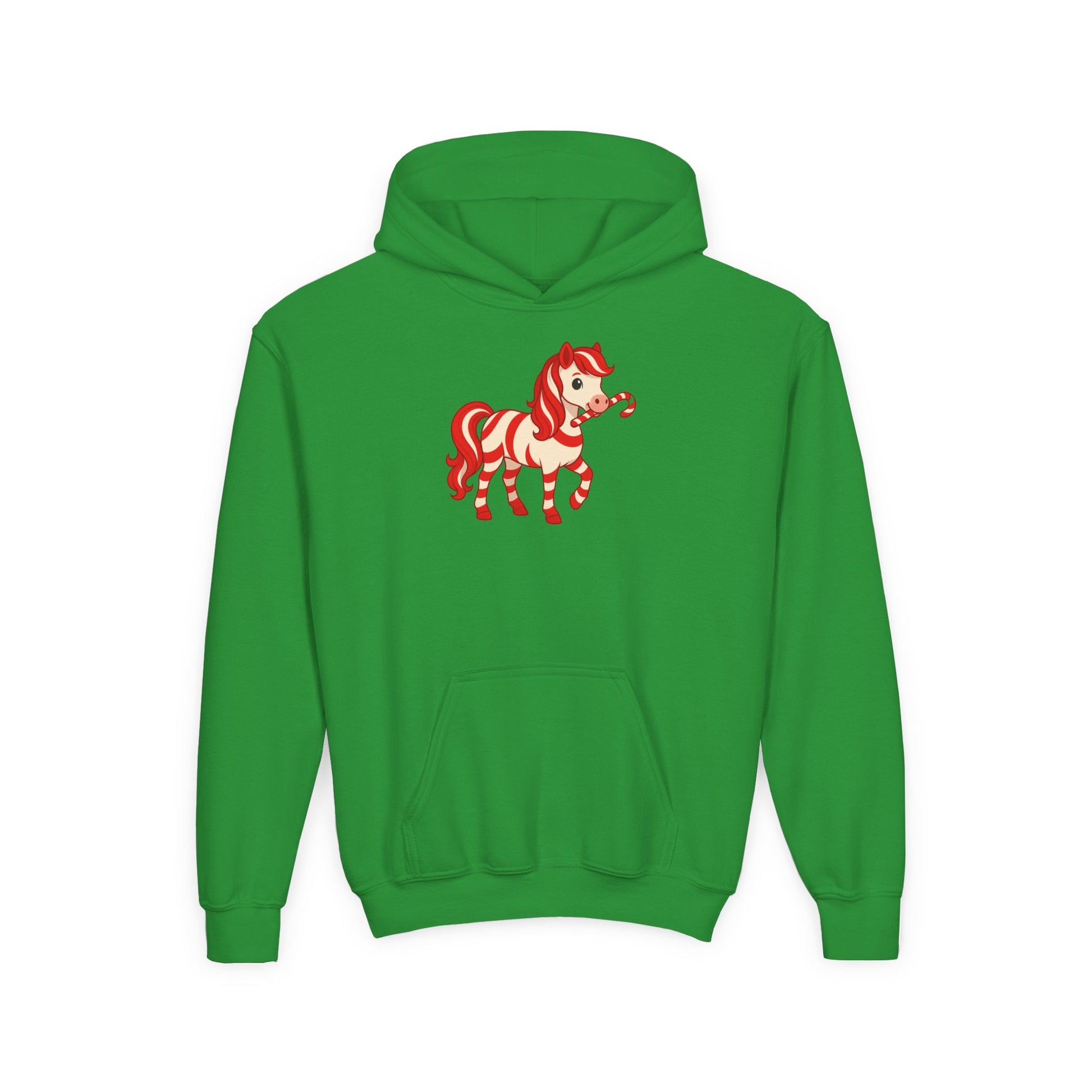 Youth Peppermint Pony Hoodie | Kids Hoodie for Christmas | Festive Children's Apparel