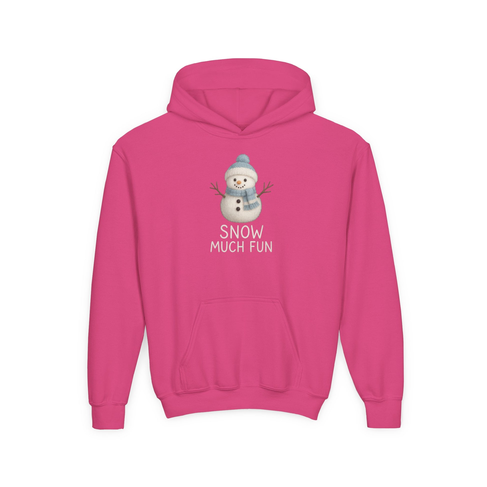 Stay cozy and stylish this winter with the Youth Snow Much Fun Hoodie. This snowman-themed kids hooded sweatshirt is perfect for keeping warm during the cold season. It's the ideal winter clothing for children to enjoy outdoor activities or simply relax at home by the fireplace. A fun and festive design that embodies the spirit of the holidays.